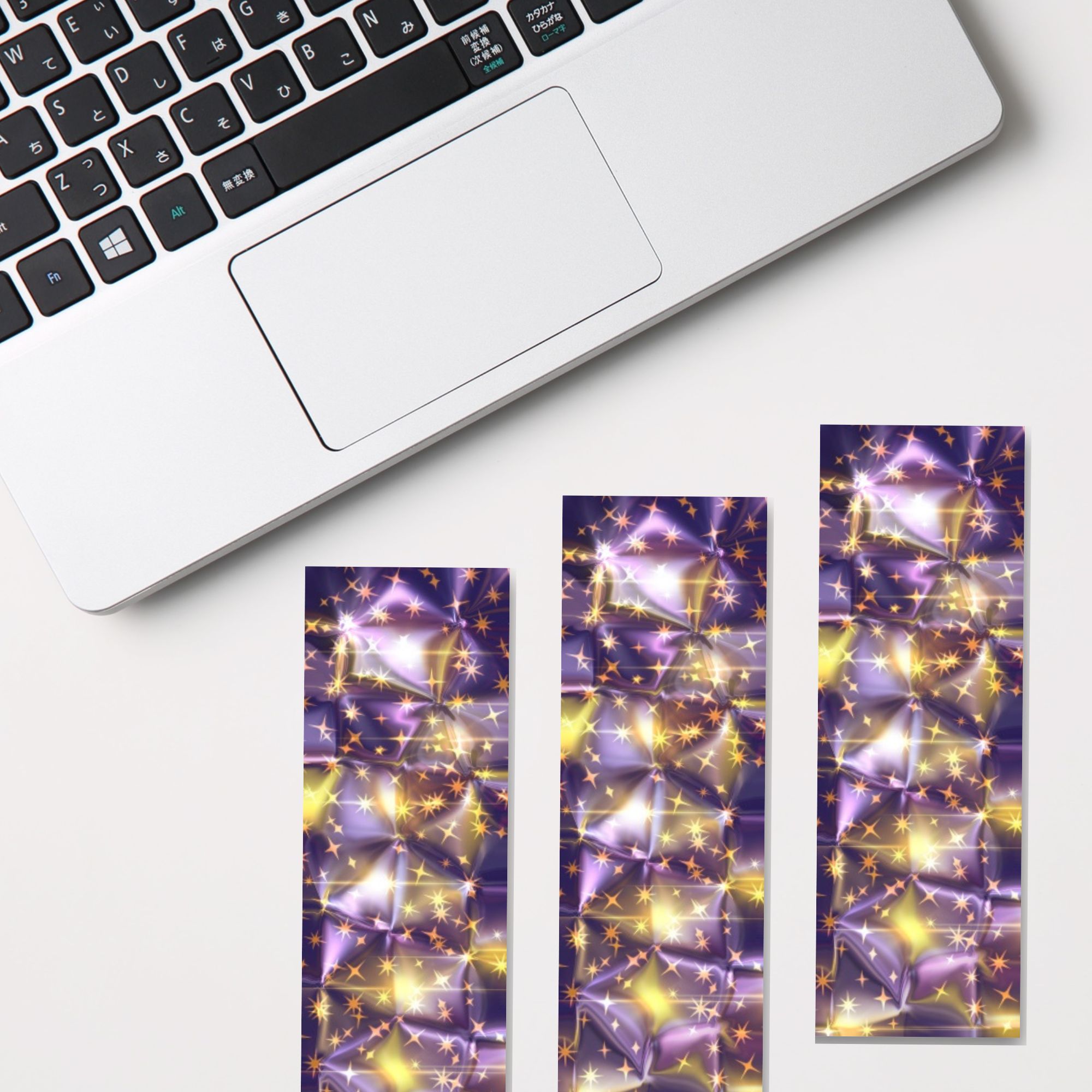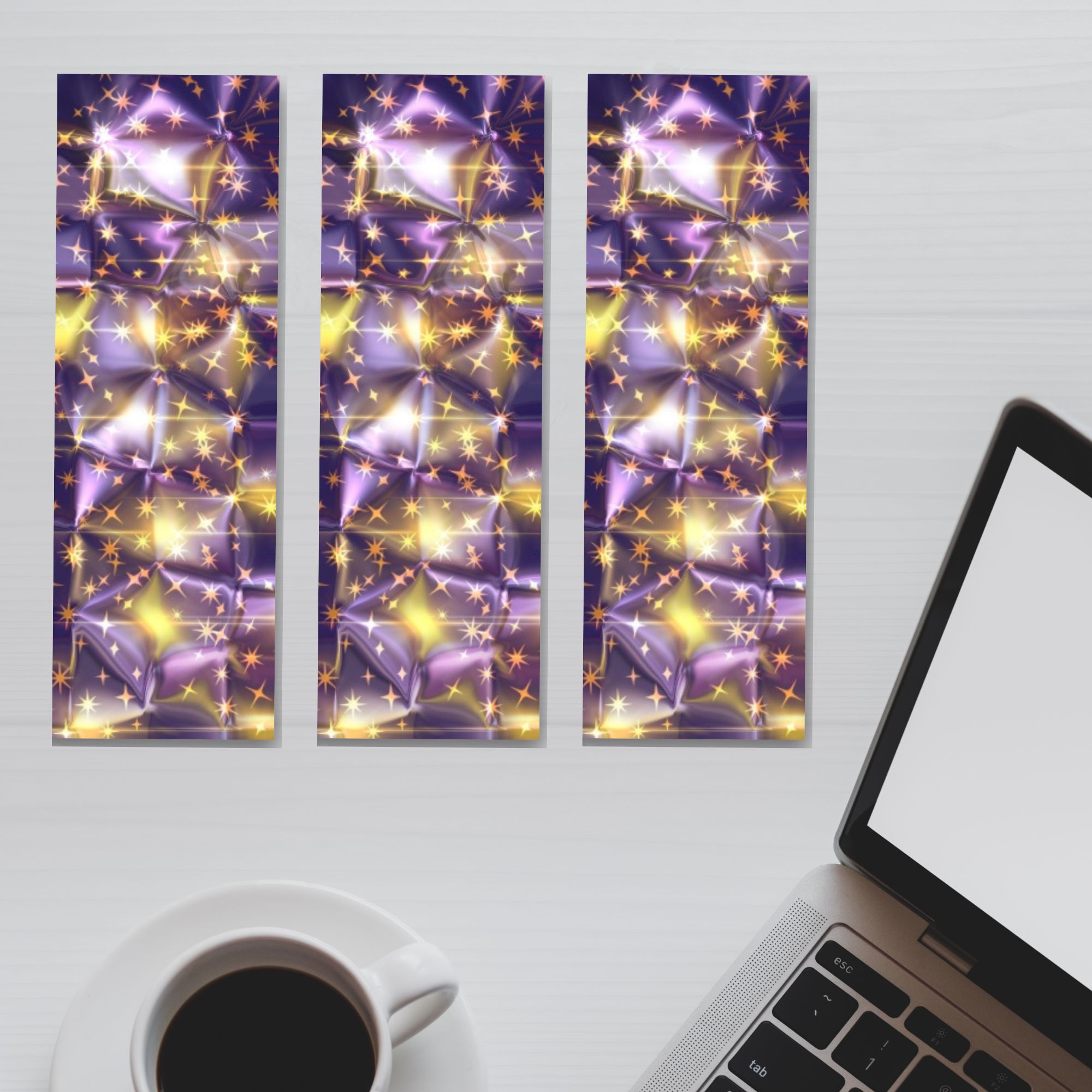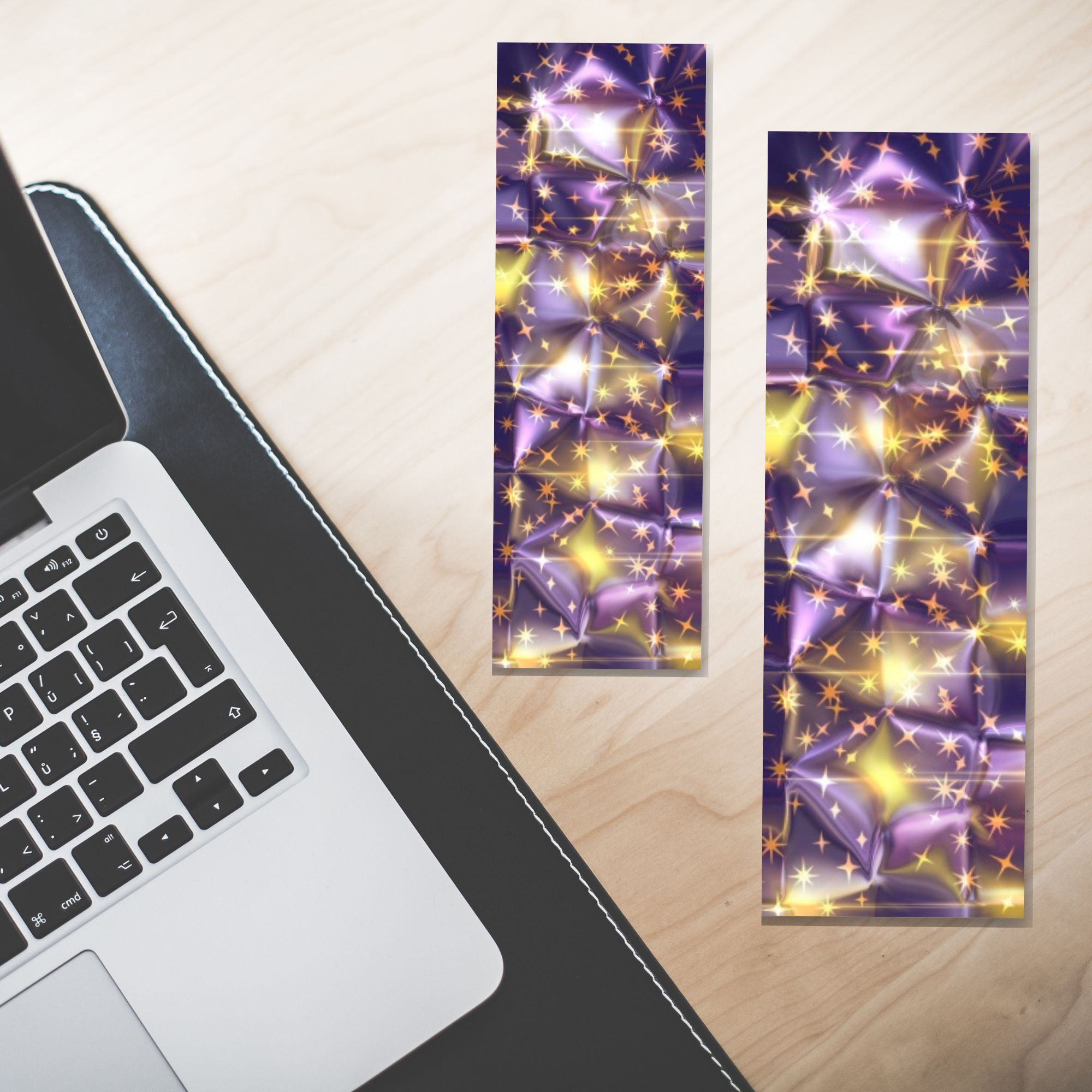 The Golden Purple Galaxy bookmark captures the magic of a night sky painted in cosmic gold and deep violet. Swirling stardust, glowing nebula tones, and shimmering celestial accents create a design that feels both mysterious and luminous — like holding a tiny universe between the pages of your favorite book.